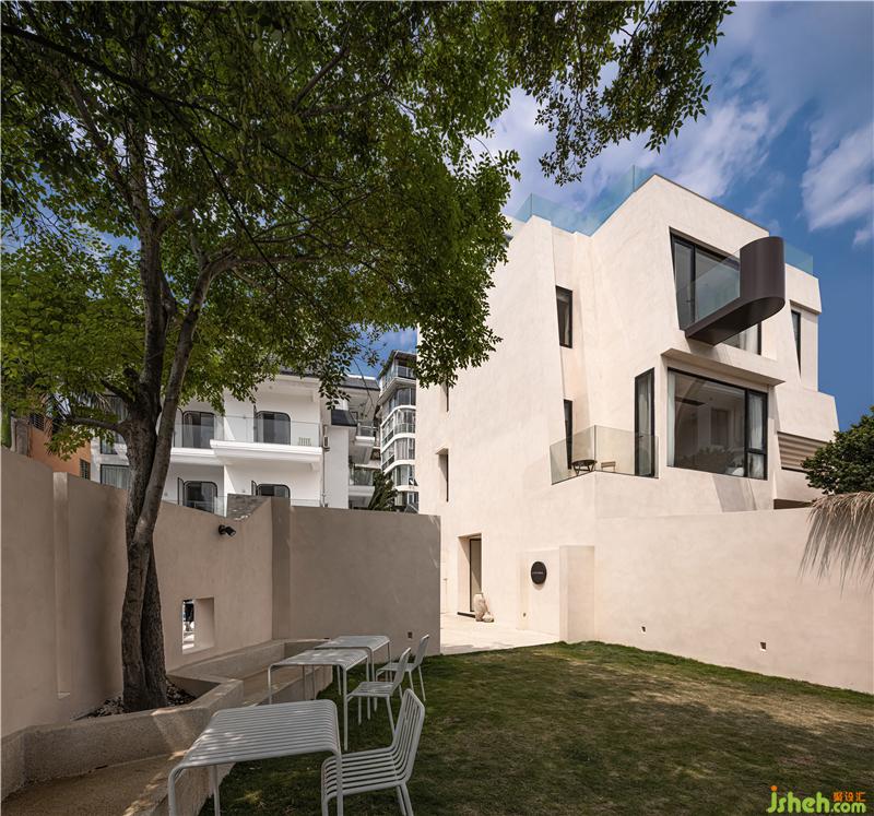 改造前的言海原本是一間村民的房屋,設(shè)計(jì)師重新進(jìn)行了區(qū)域劃分,在擁有著十二間客房的同時(shí)還有活動(dòng)草坪、篝火派對區(qū)、餐廳、以及星空泳池。