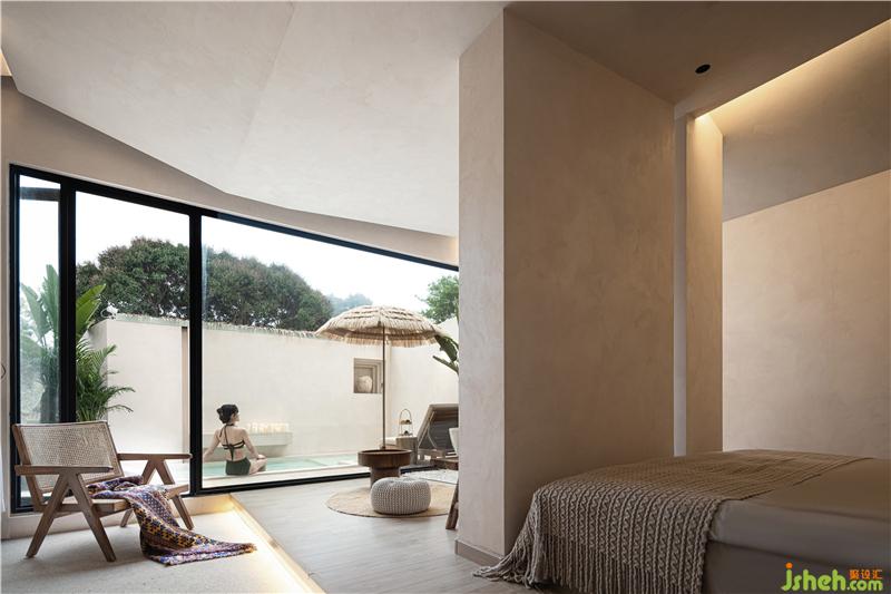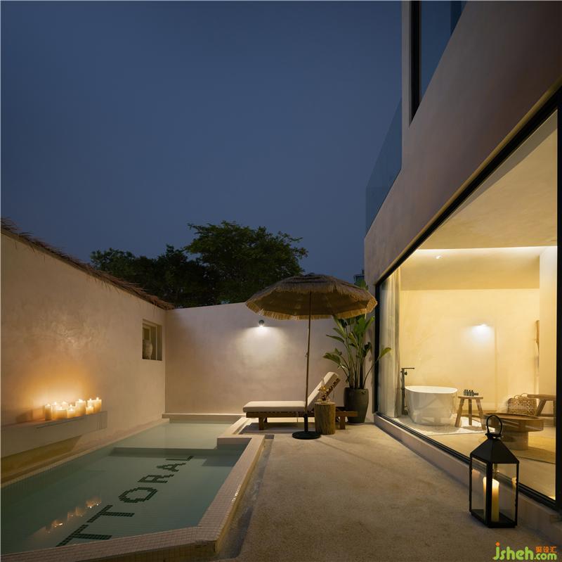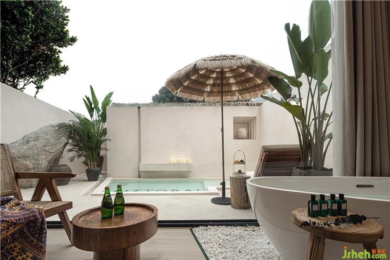 套房?jī)?nèi)的獨(dú)立的院子與泡池,很好地隔絕了環(huán)境的干擾,享受極致的私人度假感廈門(mén)酒店設(shè)計(jì)。