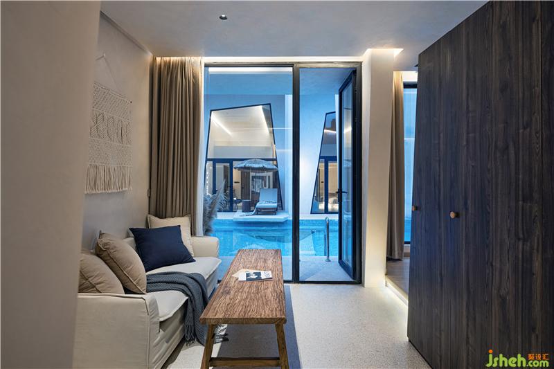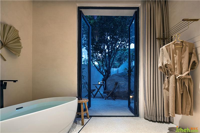 另一間套房與泳池相連,也有一個獨立的院落,原生的天然石頭與樹木在空間中形成新的碰撞,在這里可以享受片刻寧靜。