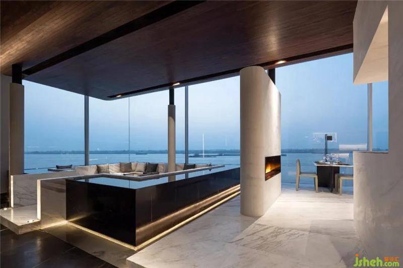 原始的建筑為弧形走向,用玻璃建造出一個個透明的“盒子”,每個空間都得以觀賞到長江景觀。酒店占地2000平方米,規(guī)劃出了十二間客房、餐廳、派對區(qū)、露天無邊泳池、公共休息區(qū)等區(qū)域。