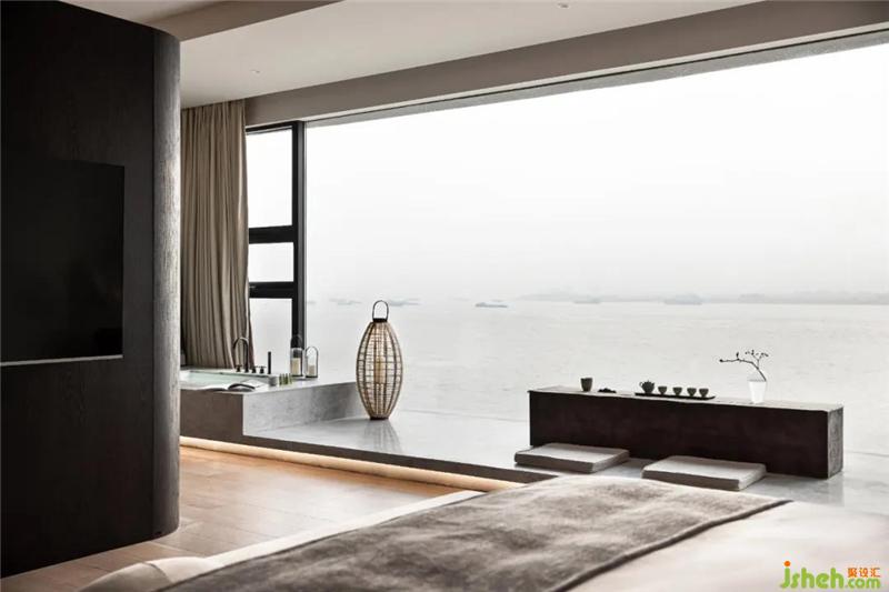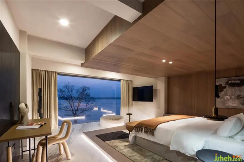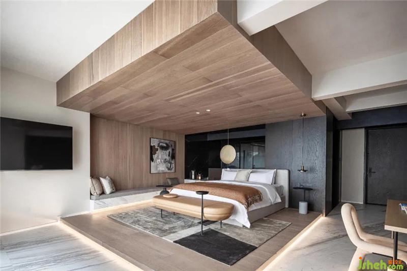 黑色盒子造型墻提取出集裝箱的概念,與原木色裝飾面做對(duì)比,在純凈的色彩之間,杭州酒店設(shè)計(jì)暖色的燈光與家具賦予空間以溫暖與自在。