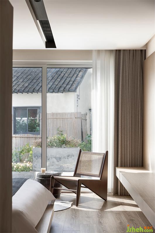 上海民宿設(shè)計客房內(nèi)無論是外部還是內(nèi)部,設(shè)計師都預(yù)留出空間能夠供客人休息。一個“農(nóng)家小院”空間在這里得到體現(xiàn),體會愜意的午后時光。