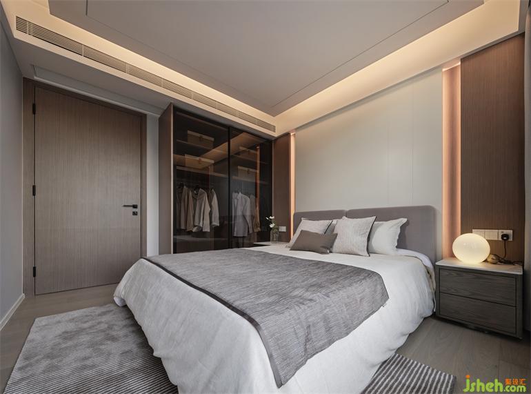 On the side of entryway, a storage space is separated to place artworks. The television is embedded in the wall connected to the bedroom, between which a frosted-glass sliding door is used for separation in order to protect the indoor privacy.