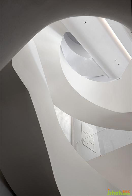 雕塑感的旋轉樓梯始終貫穿著整個住宅,如樹干般承載著空間的生長,光線進入室內,臺州別墅設計視覺感受被縱向拉長,打破沉悶的格局,因此更加自由與充滿力量感。