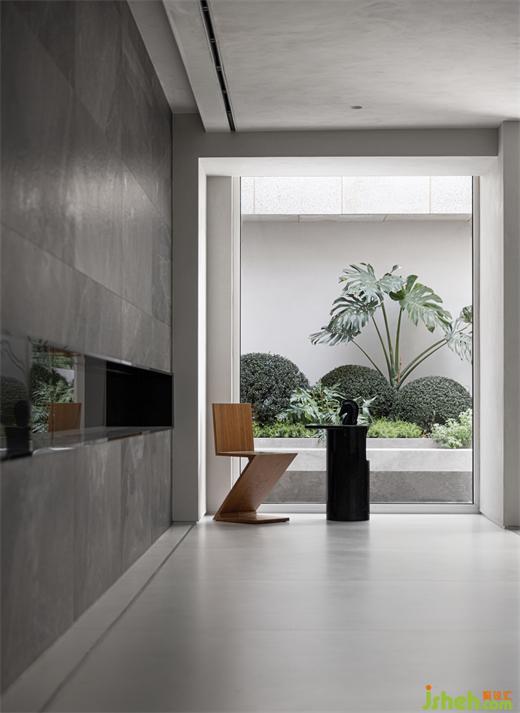 臺州別墅設(shè)計在空間的布局上,餐廳、客廳等活動區(qū)圍繞著下沉式庭院分布,達(dá)到一處一景的空間感受?;▓@景觀透過落地玻璃映入室內(nèi),室外的自然環(huán)境與室內(nèi)產(chǎn)生互動,進(jìn)一步喚醒了人們對自然的美好向往。