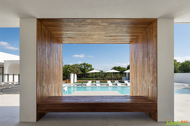 The overlapping pools are cleverly divided into shallow water, deep water and children's play zones through the structure. The campfire area provides guests with a more raw and natural feel.