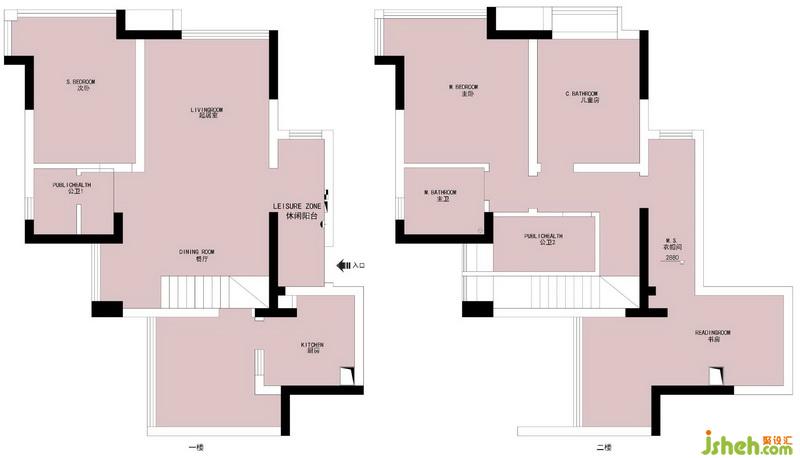 二樓:將衣帽間改成了客衛(wèi),書房變成了半開放式,原來的主衛(wèi)變成了衣柜,原來的客衛(wèi),套入了主臥變成了超大的主衛(wèi)。