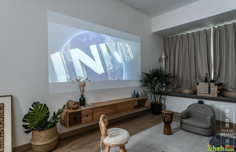 上文提過,因為業(yè)主有兩個小盆友,所以我們茶幾也給取消了,便于一家人在一起做游戲,玩耍,不會磕磕碰碰,我們也把電視機取消了,還是為了減少小盆友看動畫片的時間,養(yǎng)成更好的生活習(xí)慣,不過,我們還是考慮了投影功能,這樣,閑暇時光一家人可以在一起看看電影。