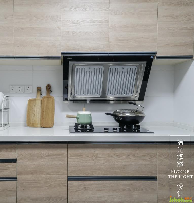 因為廚房和生活陽臺都不大,所以我們將他們打通連接,隔板下面是兩臺洗衣機和一臺烘干機,滿足家庭所需。