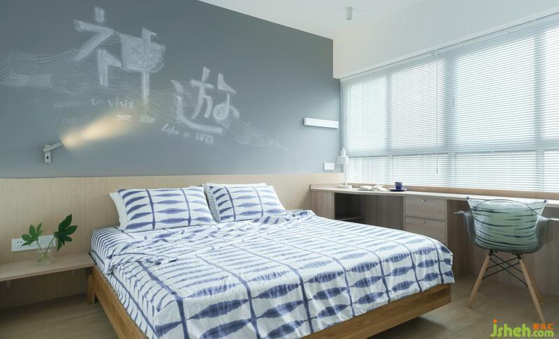 床頭是黑板墻,可以用無塵粉筆上面寫寫畫畫,床頭靠背是現(xiàn)場做的,可以發(fā)光,適合晚上打開窗邊是定制的寫字臺,因?yàn)榫嚯x的原因做了不規(guī)則處理床頭柜是用的隔板,更符合整體氛圍整體空間也是做的無主燈設(shè)計(jì),壁燈+筒燈的處理,可以讓空間更簡單