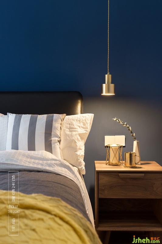 床頭背景采用深藍(lán)色有助睡眠與休息