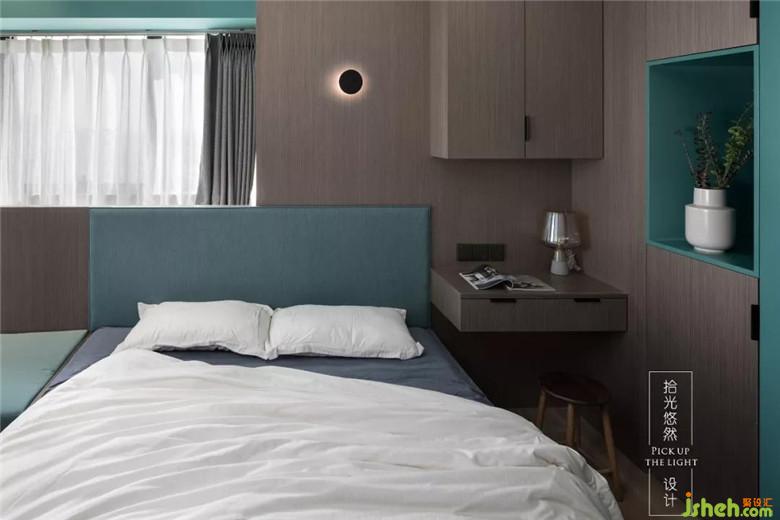 睡眠是本次設(shè)計(jì)的靈魂,懸空床頭柜和簡(jiǎn)約壁燈都是為了睡前有一個(gè)輕松的氛圍。