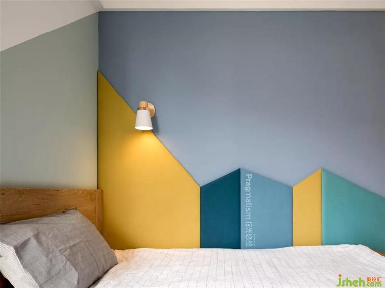 兒童房設計在整體北歐日式簡約風上,著重選擇了色彩飽滿的硬包拼接工藝,防止兒童睡覺時發(fā)生磕碰同時增加童趣感