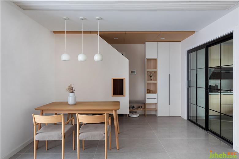 原玄關(guān)空間獨立又封閉,陰暗不合理,且屋主不希望一進門就看到餐廳,直觀全室。設計師為他們做了一個懸空半墻隔斷,去解決原戶型上的缺陷。小姐姐特別提到一個心愿就是 全屋可用掃地機器人 ,做到無衛(wèi)生死角。為了滿足屋主的心愿,我們把所有需清掃的柜體及角落都按照掃地機器人的身高量身定制了懸空柜體。