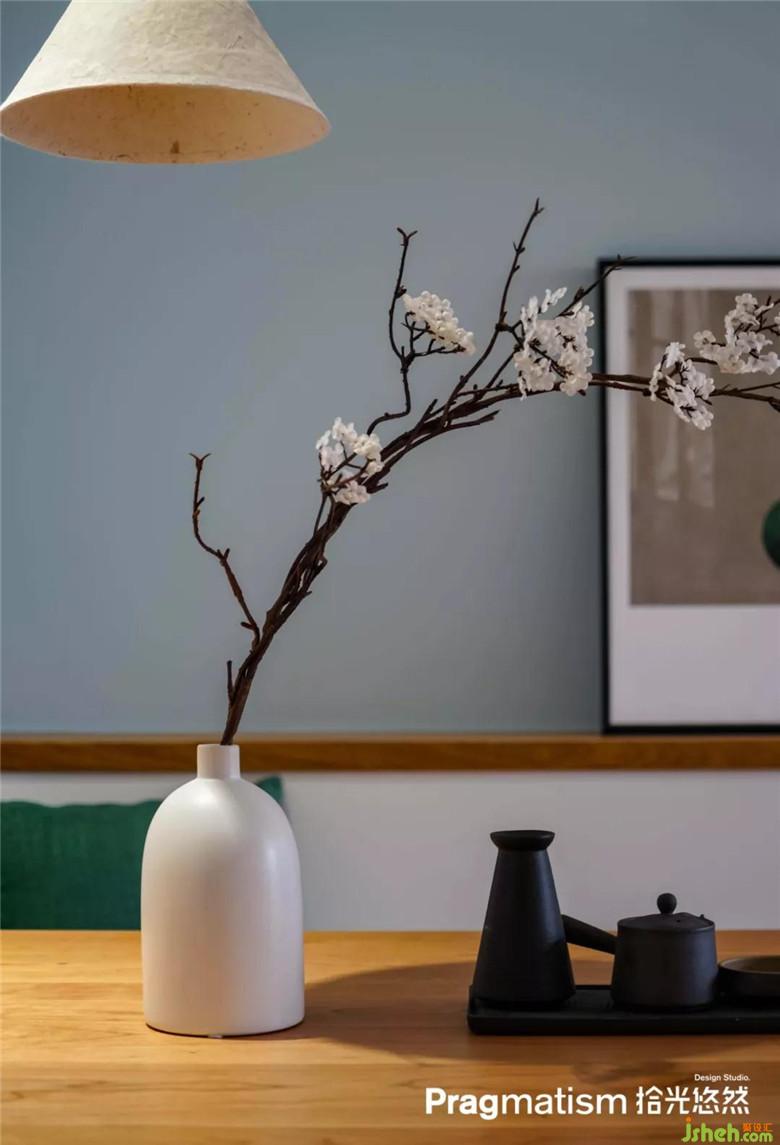 鞋柜側(cè)面做了展示柜,可以放一些喜陰的小植物,收納盒,或隨手放包,將一些美好的瞬間放在這里,開門被幸福迎接。