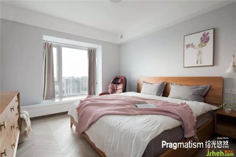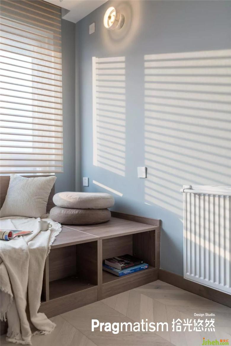 次臥房間地板用的魚骨拼貼法把木地板的好看充分發(fā)揮了出來,收納矮柜增加臥室空間的趣味感,櫻花掛畫應(yīng)景又好看。
