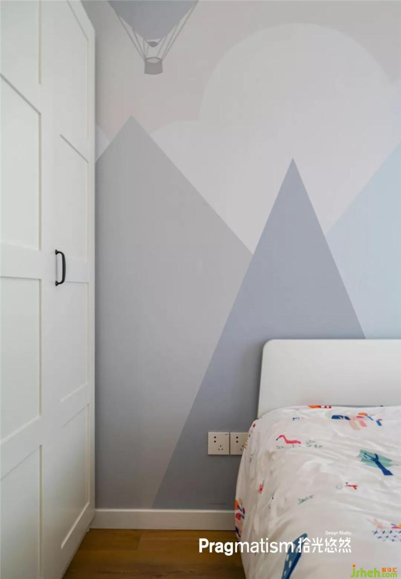 臥室承載著每個人的夢。優(yōu)雅、飽滿、瑩潤的藍(lán)墻,搭配灰色床品,清新優(yōu)雅。
