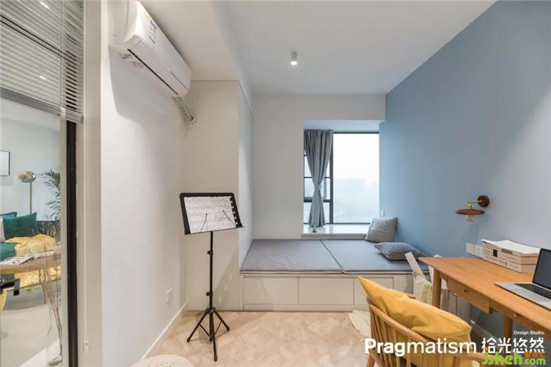 由于日常居住和使用整個(gè)空間的人只有牟小姐,所以我們沒(méi)有刻意的去打造一間傳統(tǒng)次臥,當(dāng)家里偶而來(lái)人時(shí)榻榻米就可以作為休息區(qū)使用。