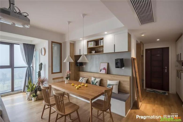 吃飯也有點小小正式感,能滿足8人同時就餐。將原來的廚房墻打掉以后重新砌墻,保證了一個完美的U字型櫥柜。
