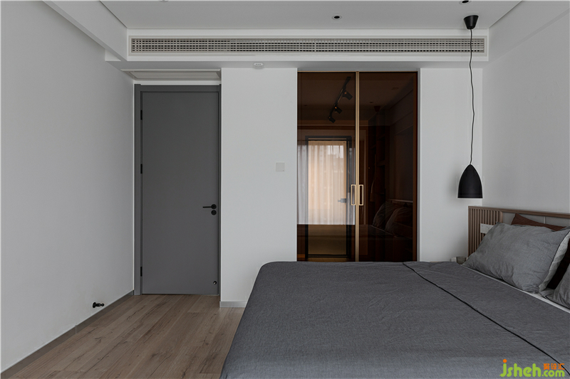 將原始主衛(wèi)空間縮小,以增大衣帽間的面積。同樣的嵌入式推拉門我們運用到了衣帽間,將茶色玻璃作為衣帽間的門面,玻璃的通透讓主臥的每個角落都能沐浴自然光。裝修設(shè)計