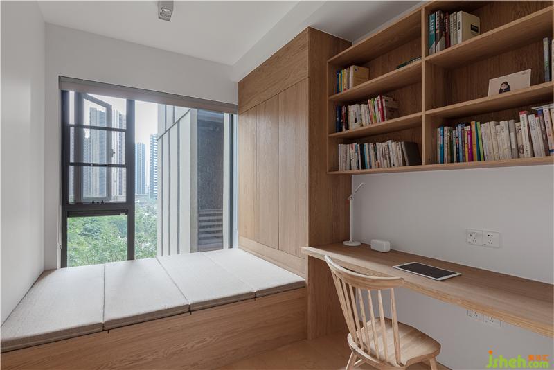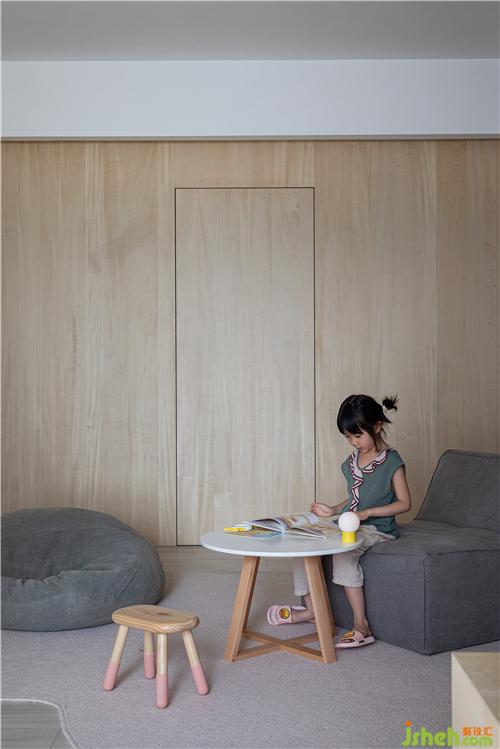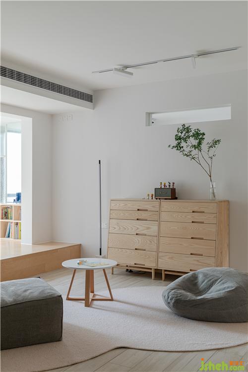 由于屋主對電視的需求度不高,通過去掉電視和電視墻占用的空間,增加了冰箱放置的空間。同時,冰箱上方考慮了置物的收納盒,可以把不常用的東西收納進去。家居裝修