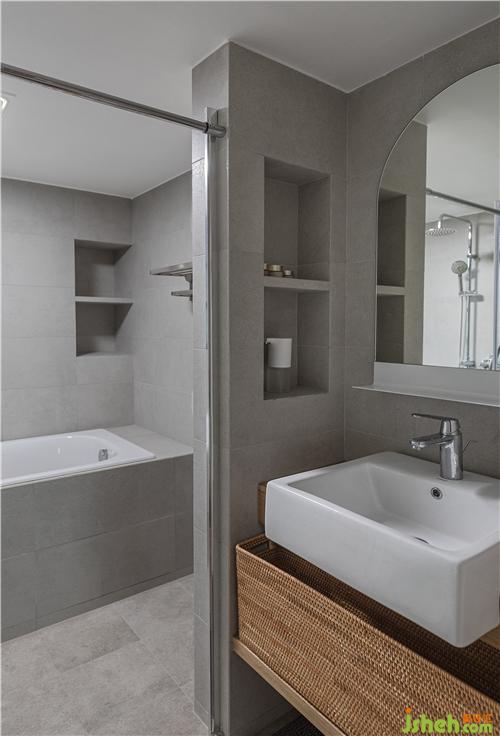 次衛(wèi)做了干濕分區(qū),因為進門就能看見,所以還是得考慮整體的效果。