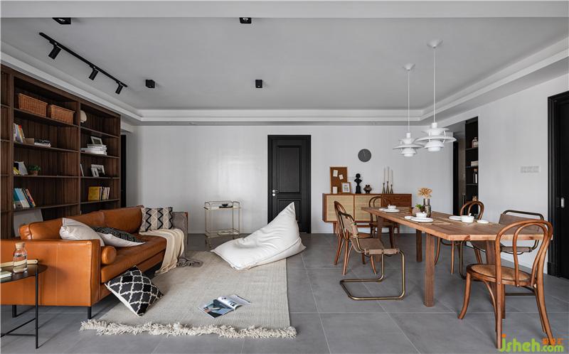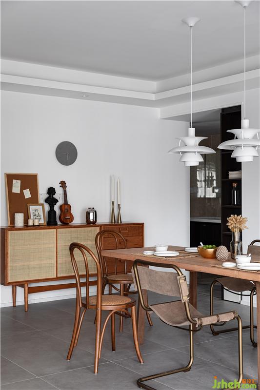 此次以軟裝設(shè)計為主,硬裝改造幅度較小,對硬裝最大的改造僅僅是將原本客餐廳的豬肝色木地板,室內(nèi)設(shè)計師選擇了換為水泥瓷磚。