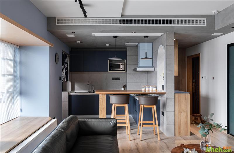 利用玄關(guān)至廚房的轉(zhuǎn)角,將餐廳與廚房進(jìn)了結(jié)合,把餐桌與島臺(tái)放在櫥柜上面,一個(gè)有儀式感與煙火氣的餐廚區(qū)就這樣誕生了。