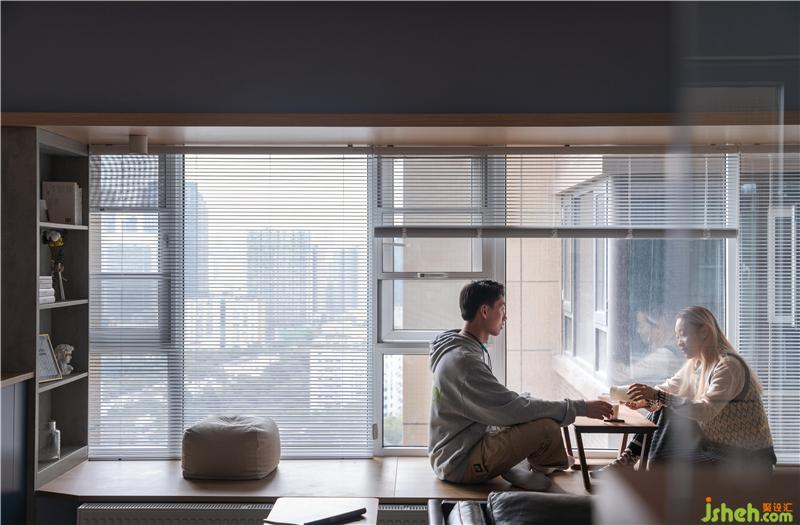 窗外正好可以看到沙河一年四季不斷變換的河景,將原本用途不大的客廳飄窗臺(tái),我們將飄窗臺(tái)面加寬達(dá)到90厘米,這樣就形成了一個(gè)茶臺(tái),在這里與家人、朋友一起喝茶,看風(fēng)景,看書聊天。