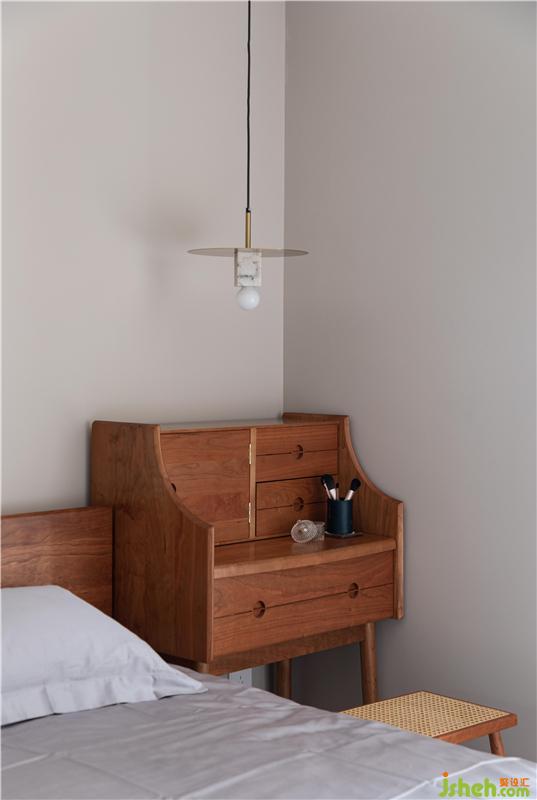 在主臥我們沒有可以設(shè)計主燈,只留有一對床頭氛圍燈和少量筒燈提升睡眠所需的氛圍感,給身體放松助眠,昏暗中透露著愜意的睡眠氛圍。