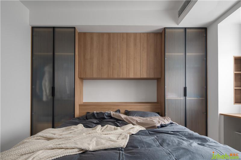 采用定制衣柜與床體結(jié)合的方式,床體底部做成抽屜,增加主臥收納空間,這樣的組合非常適合小戶型且居住人口較多的家庭使用。
