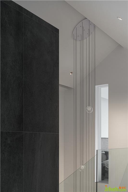 “天井”將各層空間的聯(lián)系變得更加緊密,吊燈引導(dǎo)居住者的視線自上而下望向一層,靈感來源于周邊自然景觀。