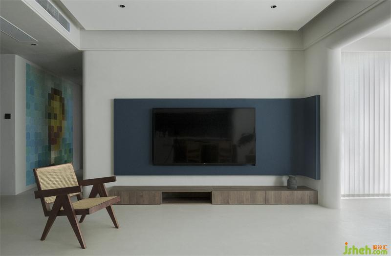 成都家居設(shè)計(jì),拆除客廳與陽臺(tái)隔斷,整個(gè)客廳僅靠陽臺(tái)的采光便能滿足自然光的補(bǔ)充。地面則考慮使用微水泥掩蓋原有的客廳瓷磚,讓空間更加純粹。