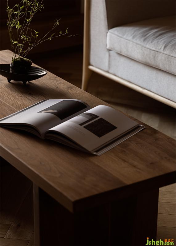 白蠟?zāi)具厧着c黑胡桃木茶幾,甚至是白橡木地板,從人類最原始的居住出發(fā),與自然毗鄰,客廳區(qū)5種不同木材的搭配,似乎透露出些許“京都安縵”的意韻。