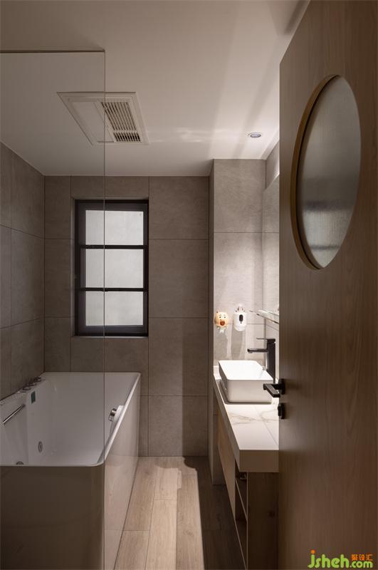 成都家居設(shè)計(jì),在主臥與主衛(wèi)洗手臺(tái)隔斷留一扇窗,利用長虹磨砂玻璃的優(yōu)點(diǎn),讓室外的自然光可以緩緩的進(jìn)入室內(nèi),解決因原始房型造成采光不足的情況。