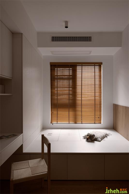 榻榻米房間作為成長性的空間,現(xiàn)階段主要是收納物品及屋主辦公。孩子年紀(jì)稍大些時(shí),再作為兒童房使用。