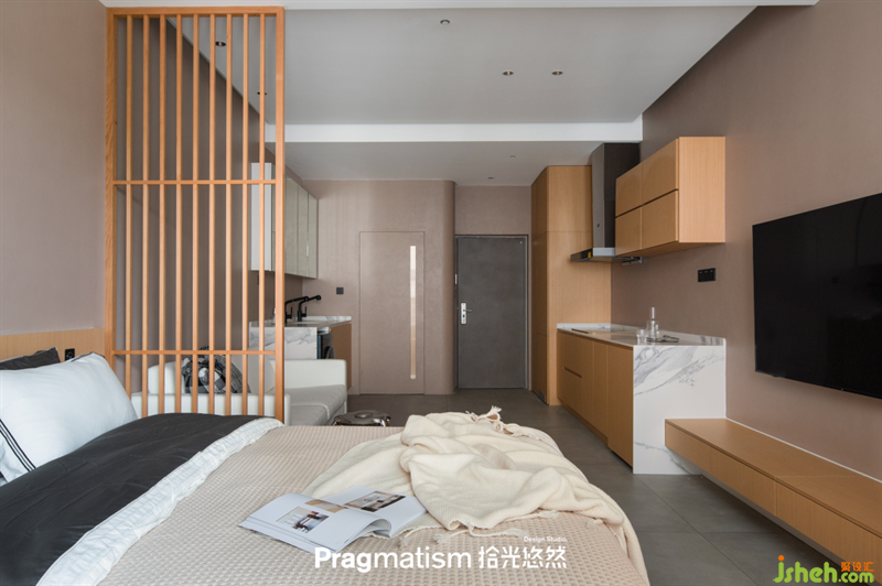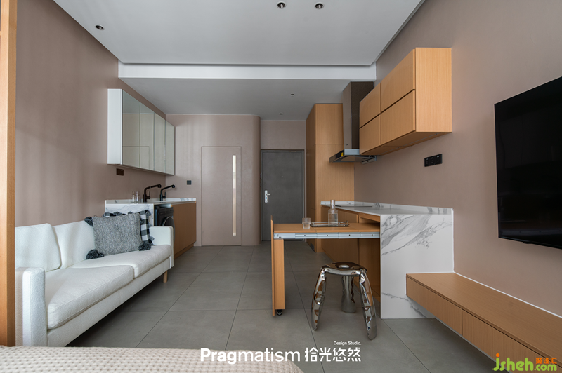 本套案例為小戶型公寓,屋主是一位職場白領(lǐng),平時工作十分忙碌,家又離公司太遠,每天光通勤就要花費大把時間。為了讓生活更便捷,屋主買下公司附近的小公寓,用作臨時休息使用。
