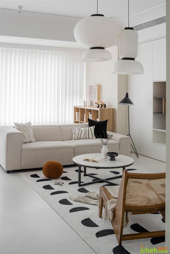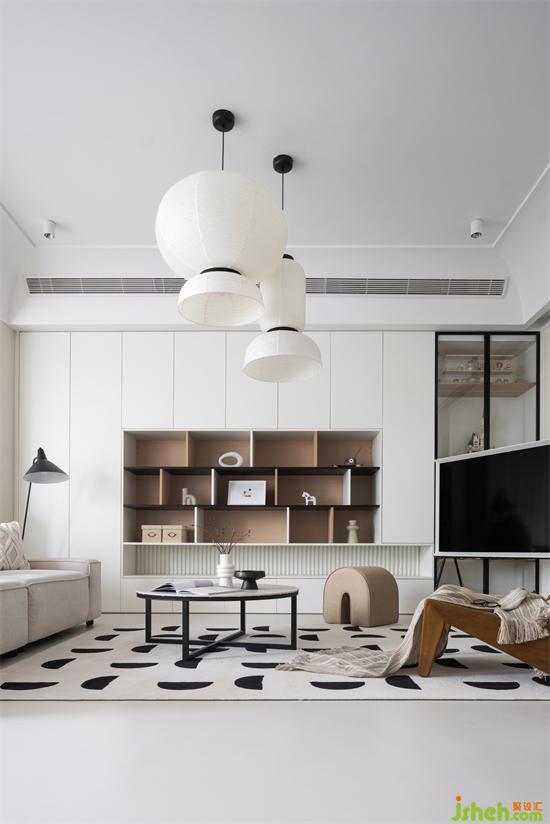奶白、奶咖、淺駝、原木,柔和的同色系讓空間里的人倍感溫暖治愈。放下茶幾,這兒是一個(gè)人的閱讀區(qū);家裝設(shè)計(jì)移走茶幾,柔軟的地毯包容更多的慵懶姿態(tài),大人笑著聊天、小朋友擺弄著小火車,剛烤好的面包放在一旁,空氣中彌漫著濃濃的香甜味兒。