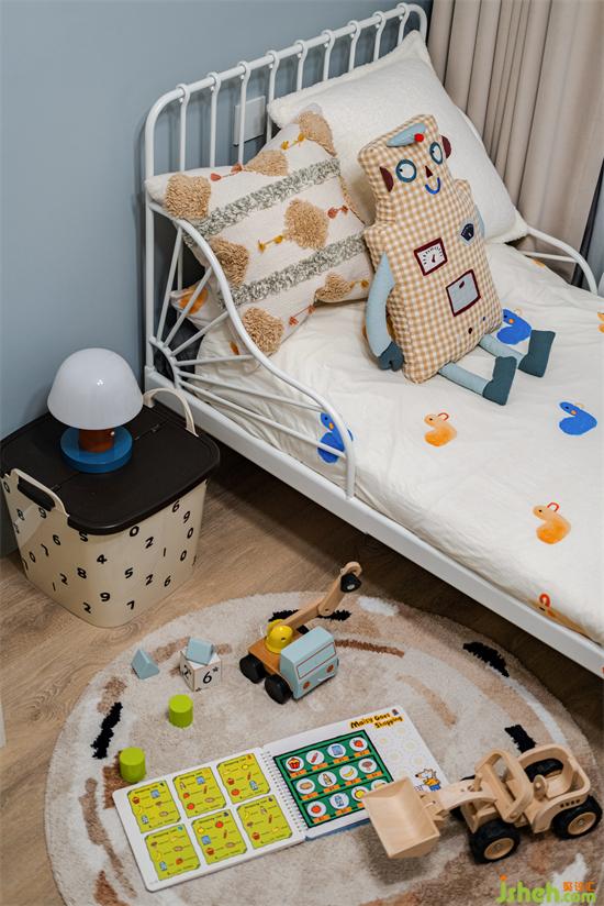 小朋友年齡小,原來(lái)的小床完全夠用,加上屋主希望兒童房的布局可以隨著小朋友的成長(zhǎng)而靈活調(diào)整,所以并未重新買(mǎi)床。