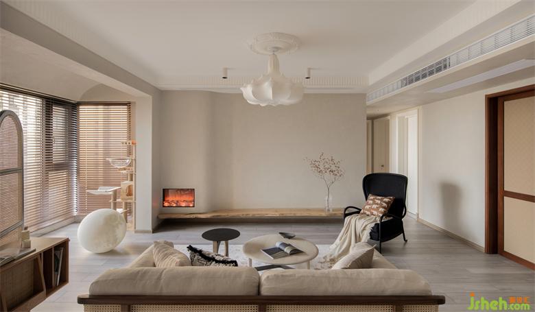 客廳陽臺打通后封落地窗,再裝上木質(zhì)百葉簾。成都家裝設(shè)計(jì)百葉簾全部合上,光線全都隱匿起來,室內(nèi)昏昏暗暗的、壁爐閃著火光,好像一幅油畫。