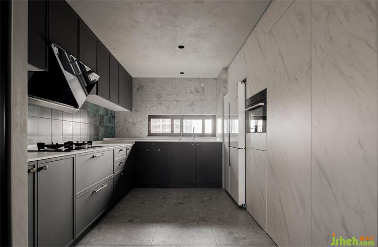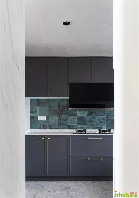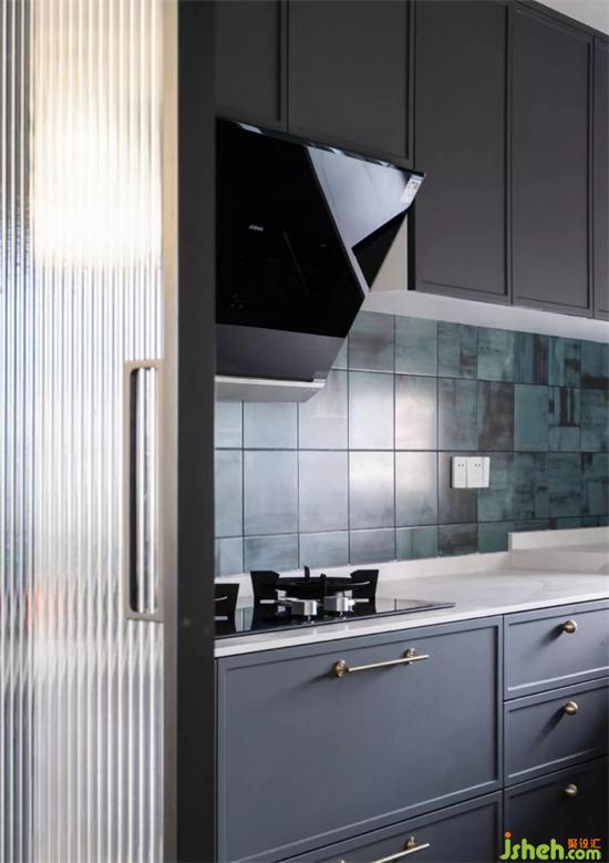 青苔綠墻磚,灰藍(lán)色櫥柜,搭配從入戶延伸而來的石紋顆粒板,成都家裝設(shè)計(jì)簡約大氣的體塊感撲面而來。生活陽臺很好地隱藏其中,絲毫不會破壞空間的整體性,治愈強(qiáng)迫癥。