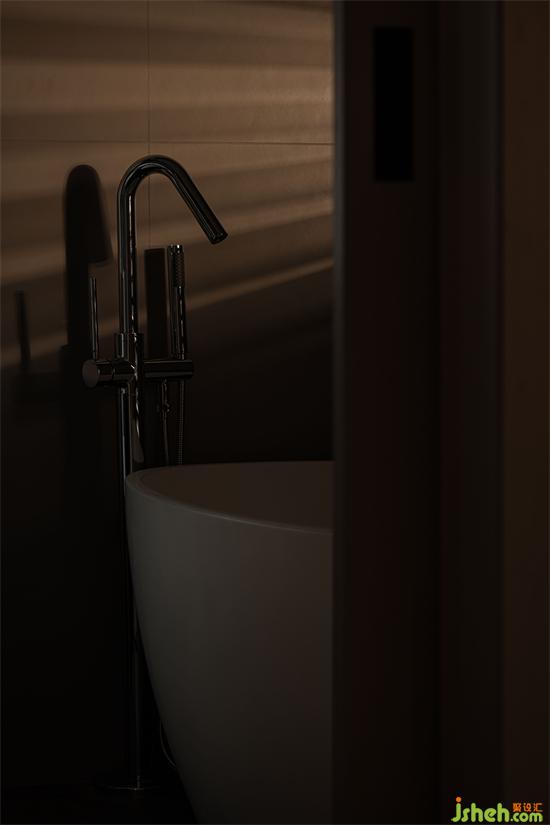 主衛(wèi)和主臥之間采用橫向木格柵,使兩空間存在曖昧的互動。沐浴溫暖,緩解一天的疲勞,家裝設(shè)計(jì)以完美的姿態(tài)迎接第二天的到來。
