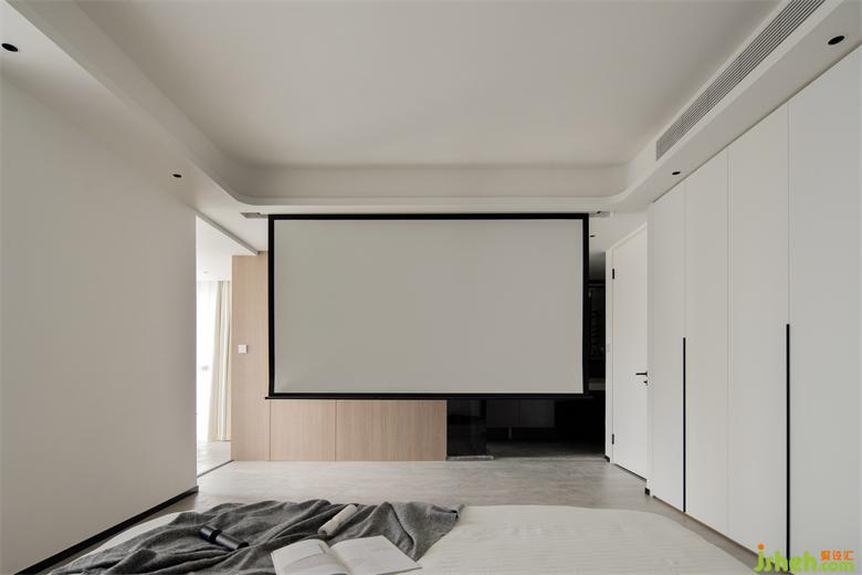 原本投影儀的區(qū)域曾考慮放置床尾凳,但是為了更寬敞的空間釋放情緒,屋主選擇了留白。她用書里的文字排版比喻,喜歡文字的排版空白的位置更多一點,這樣不會讓人感覺那么壓抑,家裝設計就是要放松。