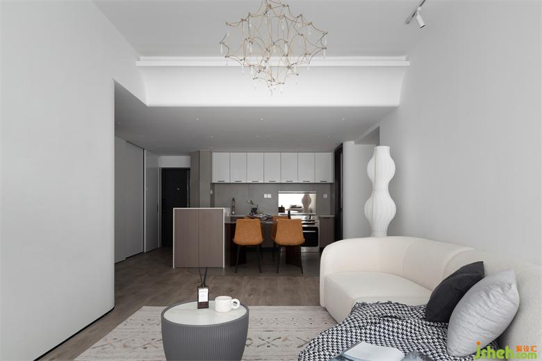 對于這些不能拆除的家伙,成都家裝設(shè)計利用吊頂將設(shè)備與房梁統(tǒng)統(tǒng)隱藏起來,視覺上整體平滑整齊,餐廚與客廳頂面的錯落有致,也給空間帶來了層次感。