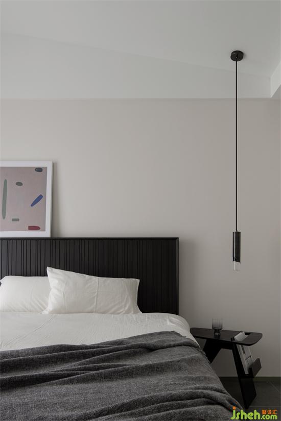 床頭影影綽綽的吊燈,家裝設(shè)計讓躺在床上看書或是玩手機(jī)變成極為舒服的事。一整面內(nèi)嵌的衣柜,滿足夫妻二人的日常所需。頂部的光源,為大面積衣柜的使用帶來便利。家裝設(shè)計