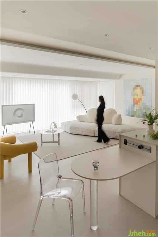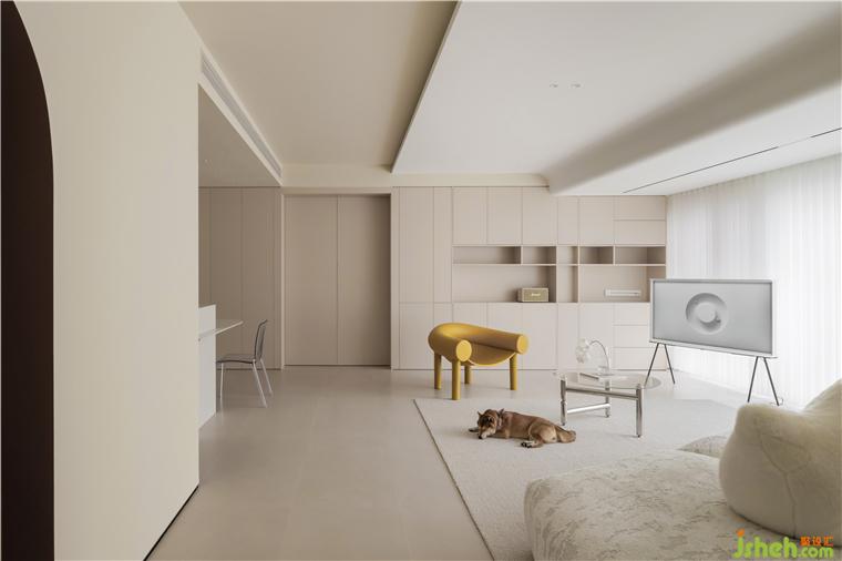 整屋采用裸色系的色調(diào),使得家里溫馨簡潔,帶給屋主無限自由和放松。
