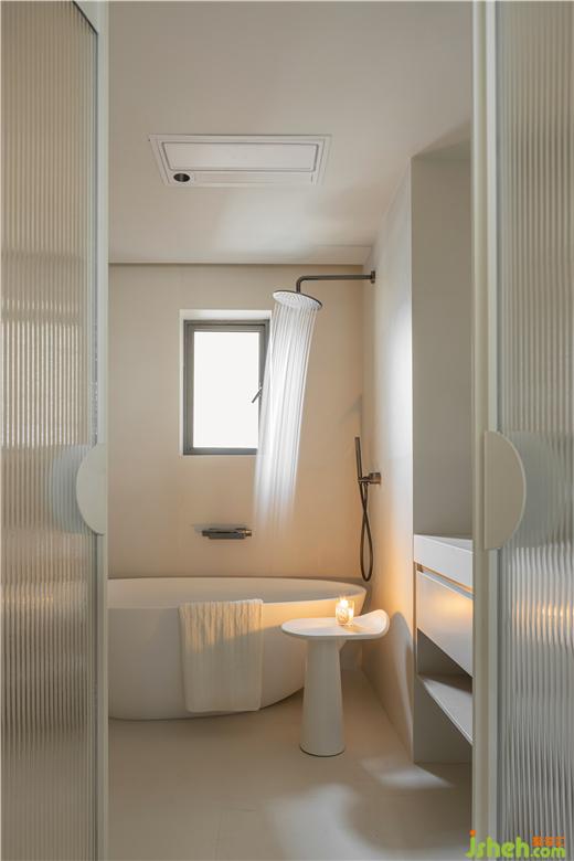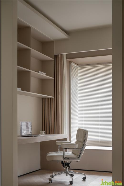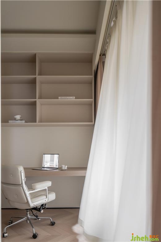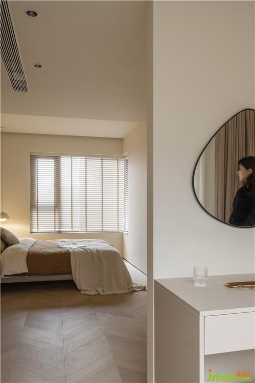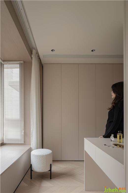 將主臥打造成集睡眠、衛(wèi)浴、辦公、收納于一體的大套房形式。