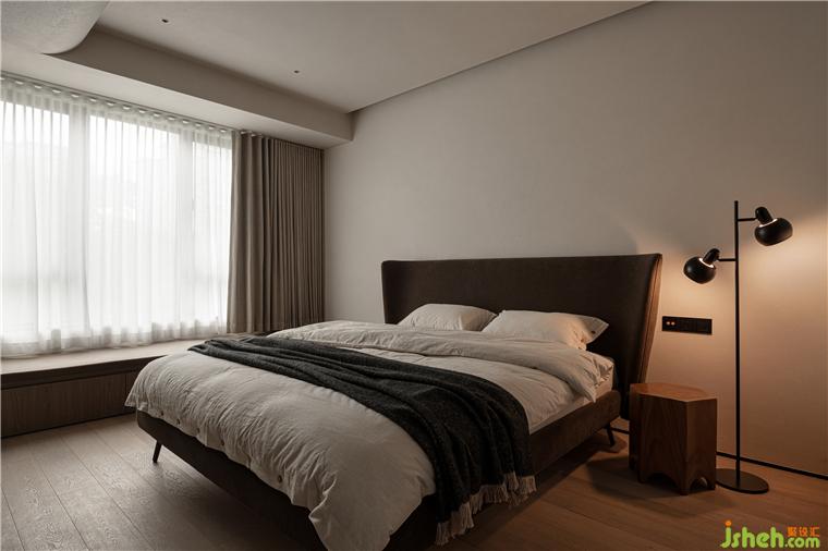 主臥延續(xù)整體空間設計的自然樸素質感。應對屋主的梳妝和儲物需求,在床尾特別設計了斗柜+梳妝臺的整體成品家具,成都香悅府裝修設計將空間的尺度把握得恰到好處。
