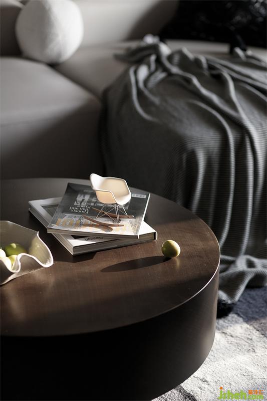 沉穩(wěn)厚重的煙熏色茶幾與高級灰絨面地毯結(jié)合,為整個客廳鋪墊一層溫馨的基調(diào)。