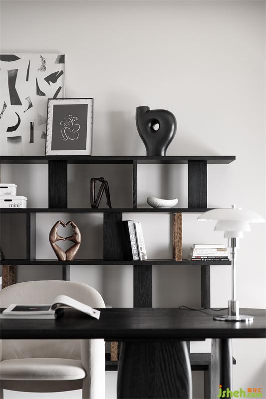 書柜上的各種風格的擺件、裝飾畫,打破墻面的沉悶,呈現(xiàn)出迷人的摩登氣息,在細節(jié)中彰顯主人的格調(diào)與品位。